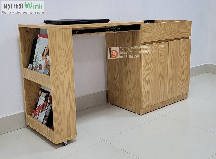 >>Xem thêm: Bàn thông minh xếp gọn kết hợp tủ sách