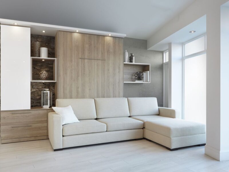 Giường gấp tường thông minh (Murphy bed) hoặc giấu gọn trong các kết cấu nội thất khác.