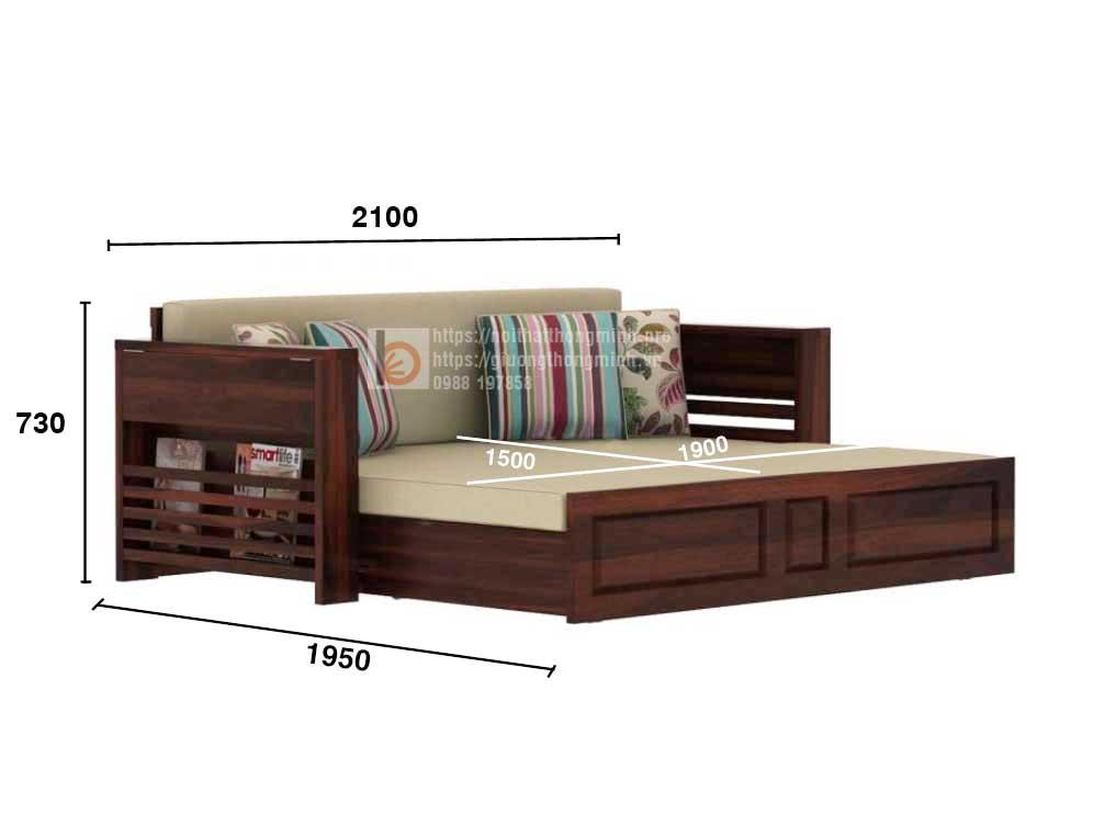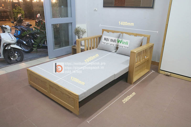 Sofa giường đơn thông minh 1m2 gỗ tự nhiên