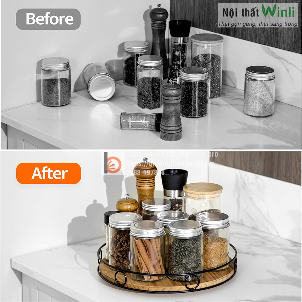 Tham khảo thêm: Kệ chai lọ xoay 360 thông minh